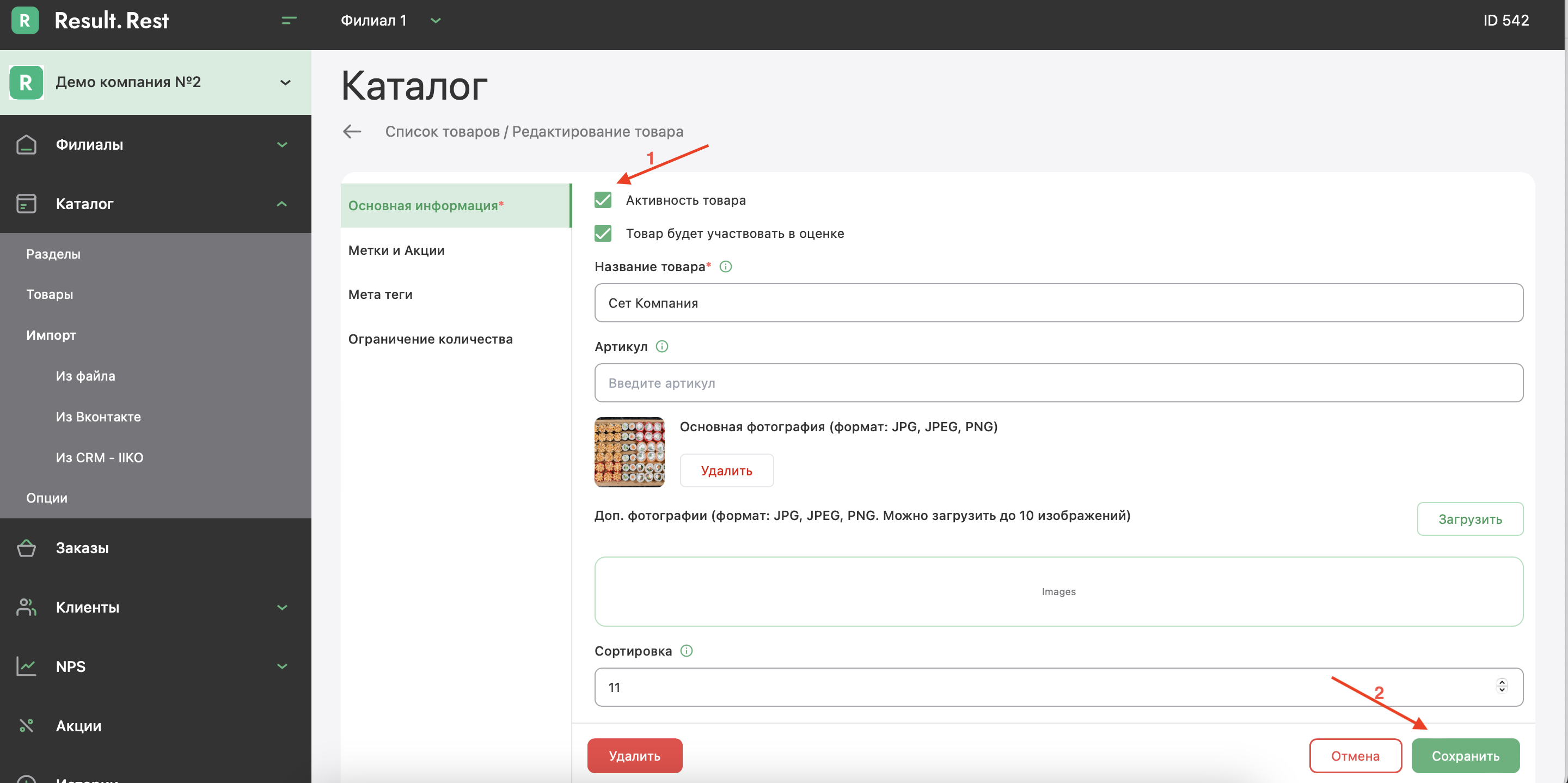 Заходим в раздел "Каталог" и выбираем подраздел "Товары".